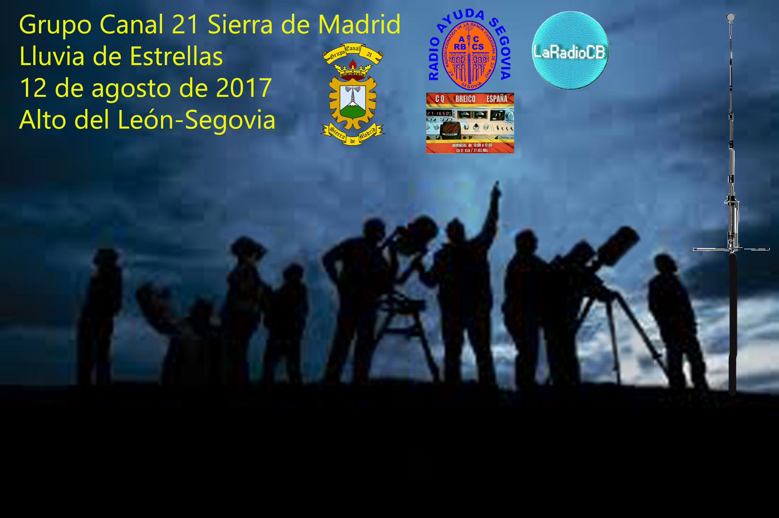 El próximo día 11 de agosto sábado, Grupo Canal 21 Sierra de Madrid Convoca de nuevo un año más en "Cabeza Lijar" (Sierra de Guadarrama) a cebeístas, radioaficionados y público en general para, asistir a la "Lluvia de Estrellas 2012", coincidiendo con los días más álgidos para la observación de este fenómeno que se repite todos los años próximo a la fiesta de San Lorenzo. También podremos ver la Vía Láctea Mercurio, Venus, Júpiter, otras constelaciones y alguna galáxia próxima.